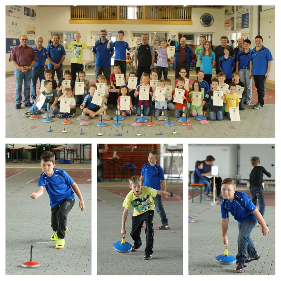 Innerhalb des Ferienprogramms organisierte der EC Gerabach einen Schnuppertag in Form einer Eisstock-Mini-Meisterschaft. Hierbei beteiligten sich 26 Kids im Alter zwischen 6 und 13 Jahren. Auf einem Parcours mit 10 Stationen mußten verschiedene Aufgaben wie Masten, Stockschießen, Blattlschießen usw. erledigt werden. Hierbei erhielten die Teilnehmer Punkte. Die Kinder waren allesamt vom Stockschießen begeistert und erhielten anschließend eine Urkunde sowie die Erstplatzierten Pokale.