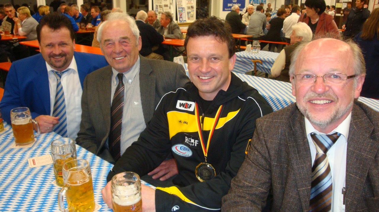 Einen großartigen Empfang wurde dem Weltmeister im Mannschaftsspiel Günther Mayer bereitet.